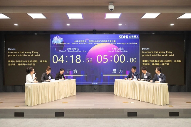 决赛进入第四轮高阶对决,6位实力选手重新组队开启3V3辩论赛,围绕“全球标准化”还是“本地化适应”展开唇枪舌战,这场脑力与口才的双重较量,尽显重工青年的思辨魅力与专业底蕴。